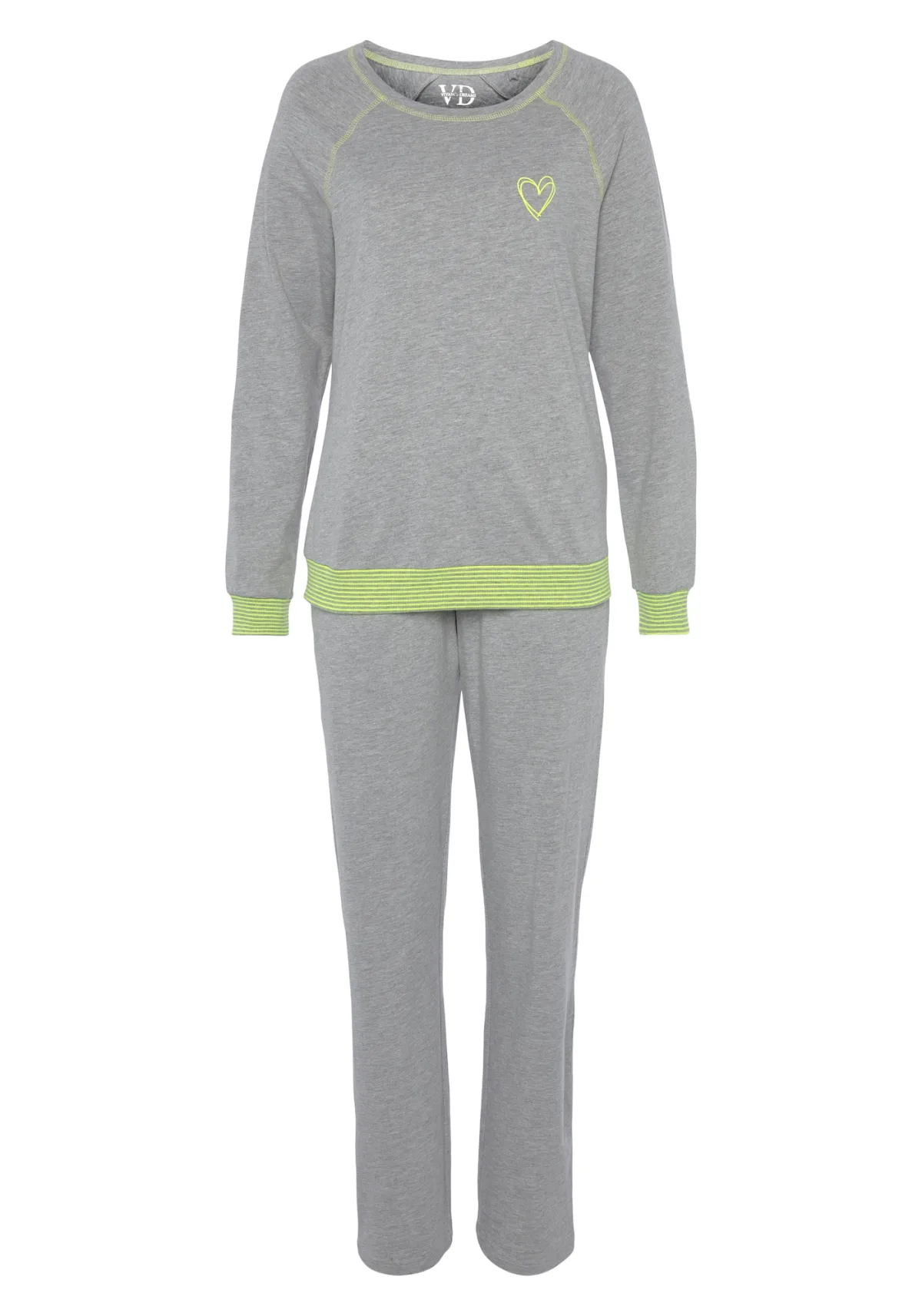 VIVANCE Pyjama ‘Dreams’ grijs gemêleerd / limoen