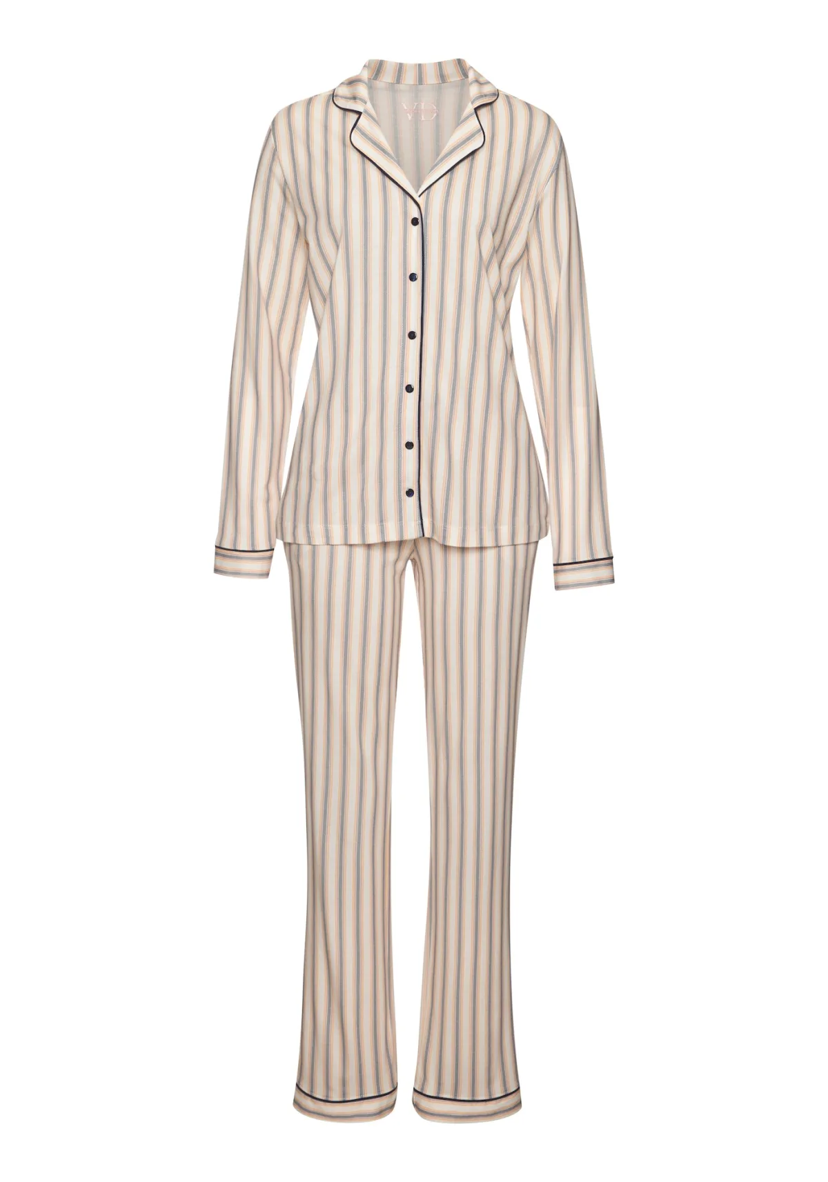 VIVANCE Pyjama ‘Dreams’ lichtbeige / marine / oranje / watermeloen rood