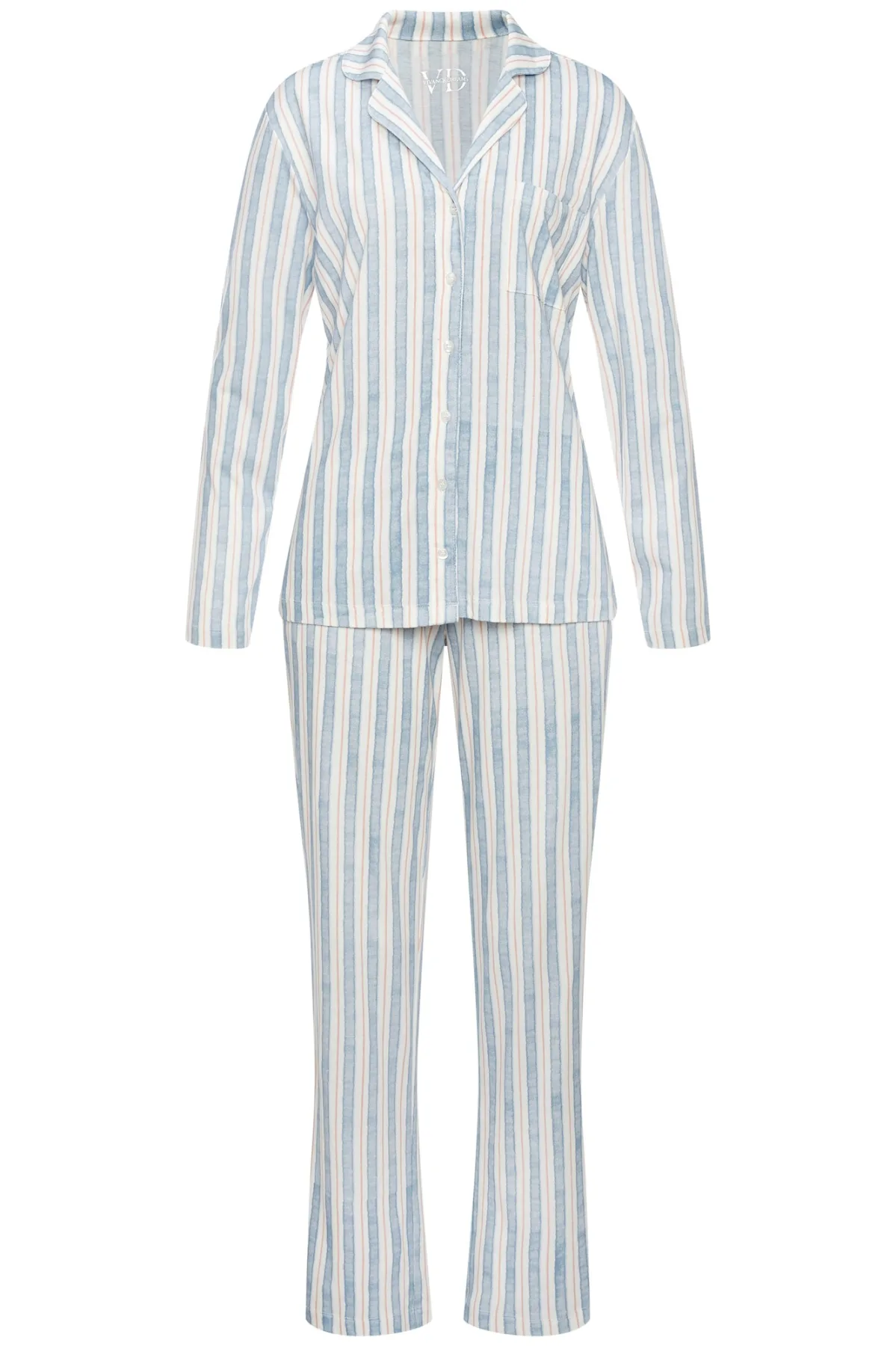 Specificaties: VIVANCE Pyjama ‘Dreams’ lichtblauw / perzik / wit