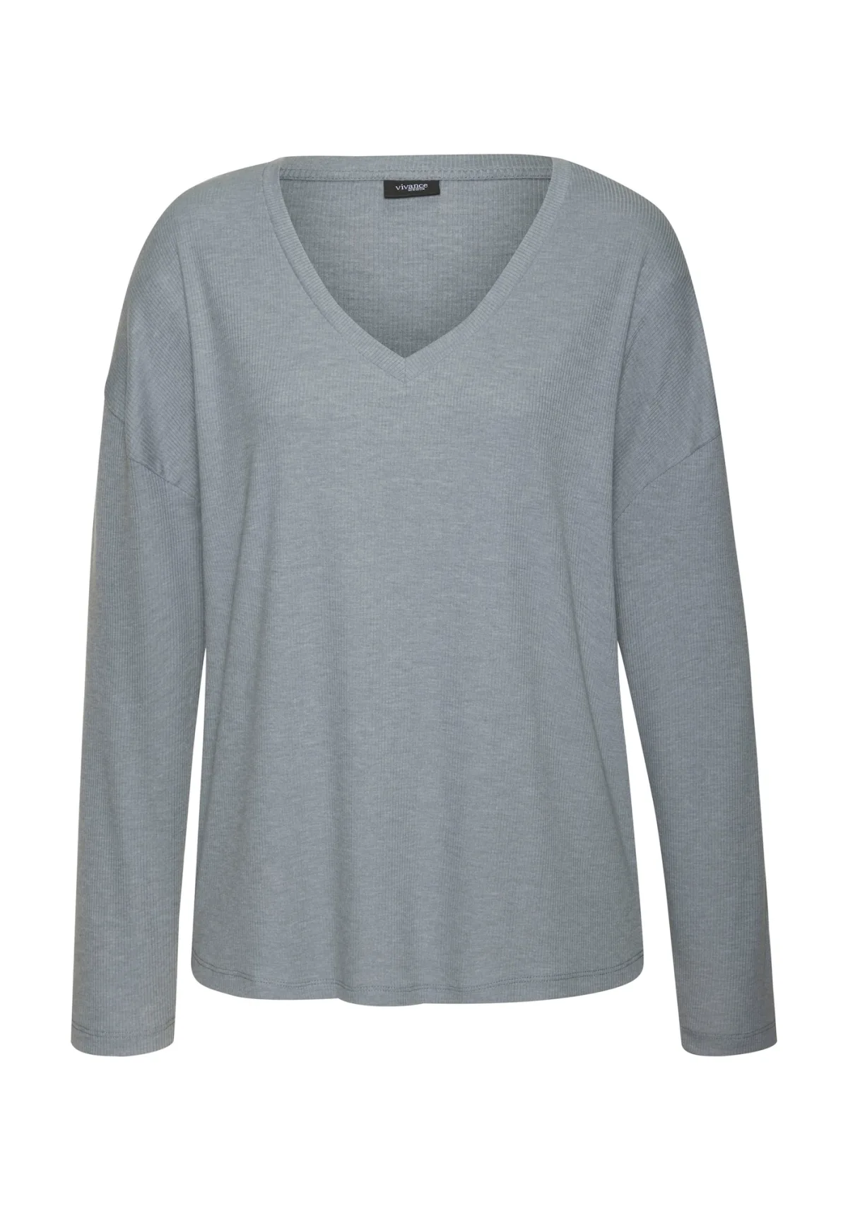 Materiaal: Jersey; Halstype: V-hals; Motief: Effen; Pasvorm: Losse pasvorm; Armlengte: Lange mouw; Lengte: Normale lengte