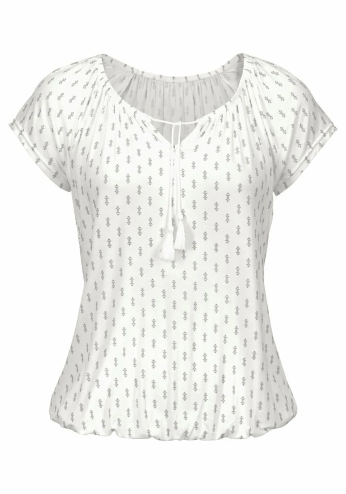 Design: Elastische taille/zoom, Om te knopen/binden; Materiaal: Jersey; Halstype: V-hals; Details: Franjes, Gedrapeerd; Extra's: Franjes, All-over patroon, Gladde stof; Pasvorm: Normale pasvorm; Aantal: 2 Pack; Armlengte: Kwartmouw; Lengte: Normale lengte