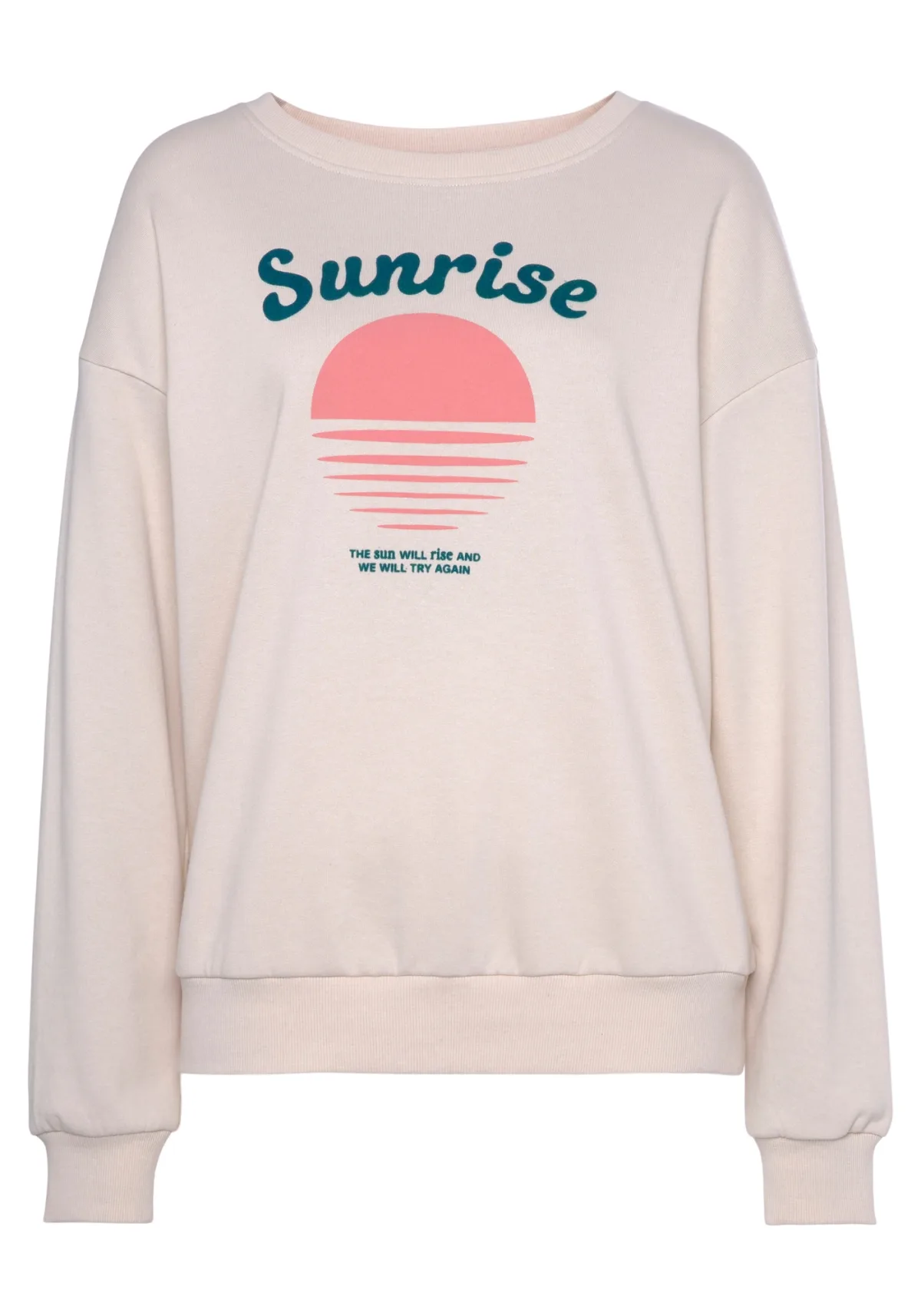 Design: Geribd ceintuurtje; Type sluiting: Slip; Materiaal: Sweatstof; Halstype: Ronde hals; Motief: Motiefprint; Extra's: Op staal naden; Pasvorm: Normale pasvorm; Armlengte: Lange mouw; Lengte: Normale lengte