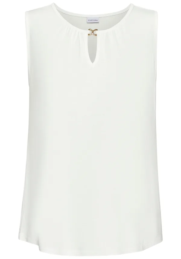 Design: Gevoerde zoom/rand, Ronde zoom; Materiaal: Jersey; Halstype: Ronde hals; Motief: Effen; Soort bandjes: Brede bandjes; Details: Cut-outs, Gedrapeerd; Extra's: Applicaties, Op staal naden; Pasvorm: Normale pasvorm; Armlengte: Mouwloos; Lengte: Normale lengte