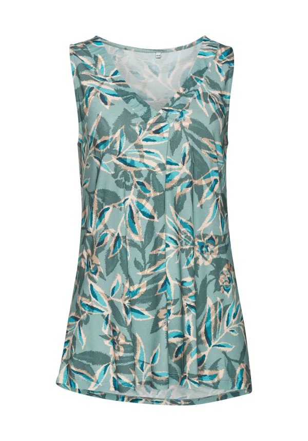 Materiaal: Jersey; Halstype: V-hals; Motief: Bloemenprint; Soort bandjes: Brede bandjes; Details: Gedrapeerd; Extra's: All-over patroon; Pasvorm: Aansluitende pasvorm; Armlengte: Mouwloos; Lengte: Normale lengte