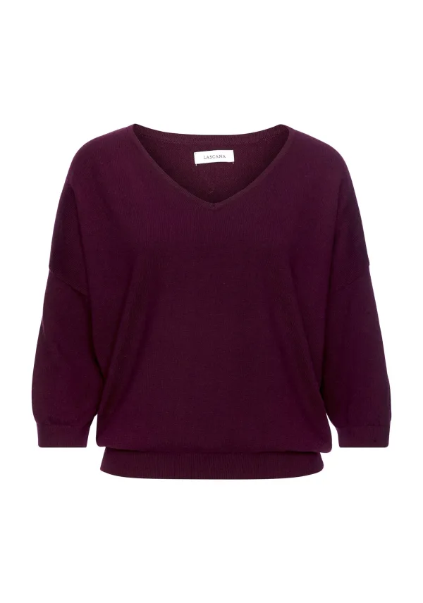 Design: Vleermuismouwen, Geribd ceintuurtje; Materiaal: Knitwear; Halstype: V-hals; Motief: Effen; Extra's: Fully fashioned, Voelt zacht aan; Pasvorm: Losse pasvorm; Armlengte: Driekwart mouw; Lengte: Normale lengte
