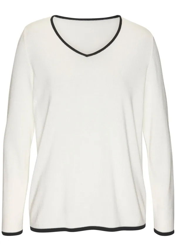 Design: Contrasterende inserts; Materiaal: Knitwear; Halstype: V-hals; Motief: Effen; Extra's: Voelt zacht aan; Pasvorm: Losse pasvorm; Armlengte: Lange mouw; Lengte: Normale lengte