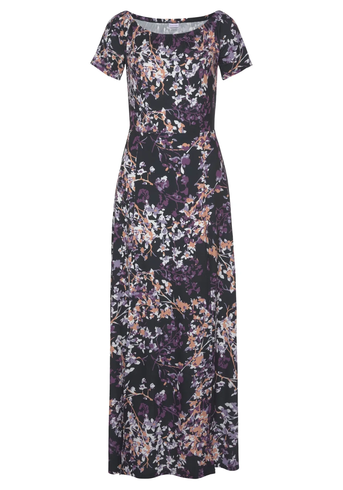 Halstype: Boothals; Motief: Bloemenprint; Lengte: Lang/maxi; Pasvorm: Normale pasvorm; Armlengte: Kwartmouw