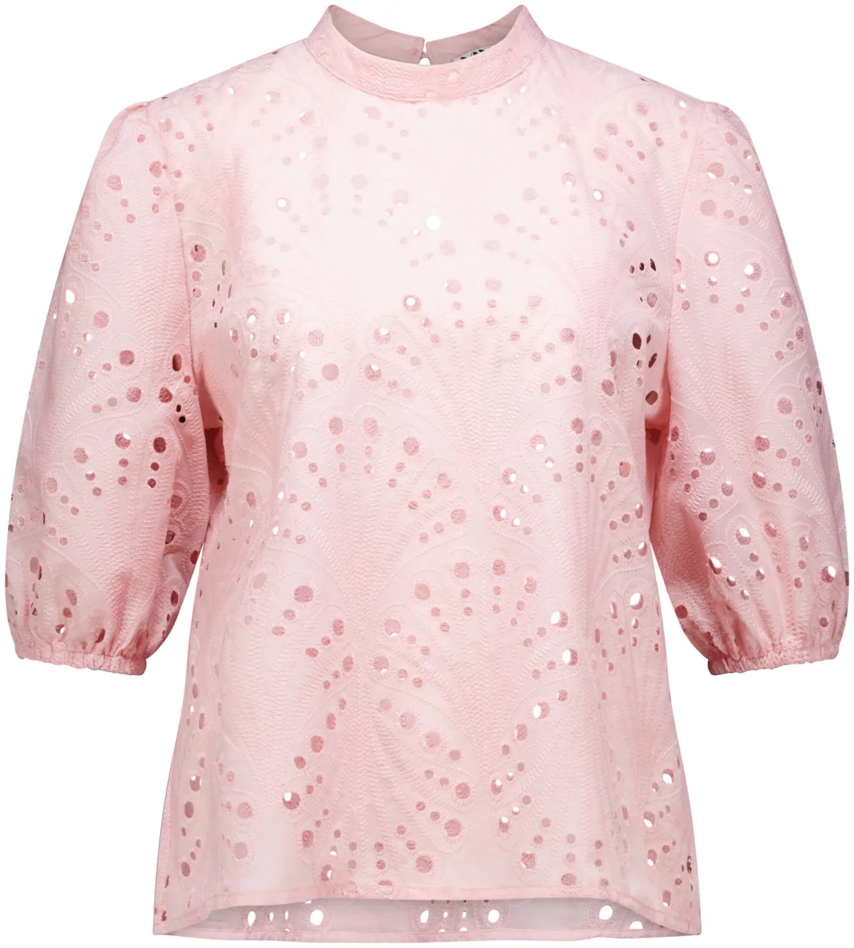 Top Aniek van Vive La Femme is een elegante top korte mouw met pofmouwen en elastische manchetten. Het unieke gaatjespatroon en de losse pasvorm maken het ideaal voor casual gelegenheden. De subtiele details zorgen voor een stijlvolle uitstraling die zowel comfortabel als modieus is.