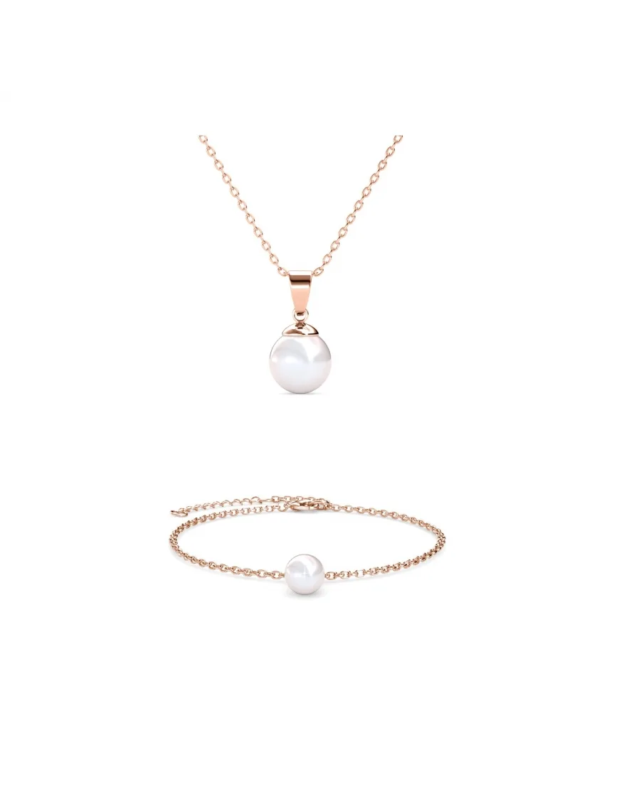Samenstelling: Messing Afwerking : Plaqué Or Rose 18k Type de Pierre : Perle d imitation Kleur steen: Kristal Lengte ketting: 400 + 50 Armband lengte (mm): 180 + 55