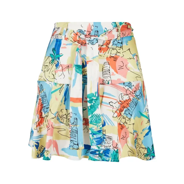 Deze mooie minirok is een essentieel en licht kledingstuk voor elk zomerseizoen. Het heeft een modern ontwerp en vrolijke kleuren, zodat het zeker uw trouwe metgezel zal zijn op warme zomerdagen of lange aangename zomeravonden. Het is gesneden als een rok aan de buitenkant en als een korte broek aan de binnenkant, wat zeker zal bijdragen aan uw perfecte gevoel van comfort en elegantie. Deze moderne rok van zuivere viscose heeft een bindceintuur voor een perfecte pasvorm en is ideaal voor alle gelegenheden en outfits.