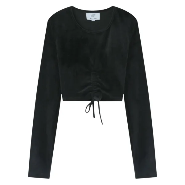Dames crop top Sixth June Cordon DetailsTop met lange mouwen Sixth June voor vrouwen.Fluwelen stof, trekkoorden onder de borst.Ronde hals, rubberen patch met logo op de hals.Pasklaar en kort geknipt. Samenstelling 95% polyester5% elastaan