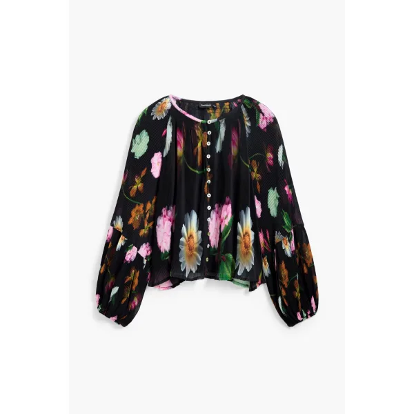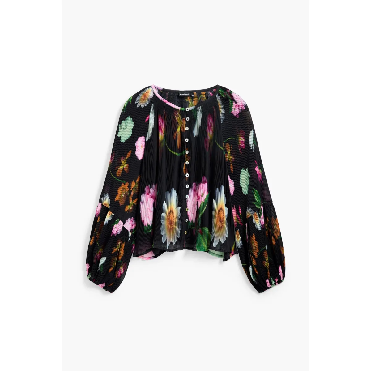 De blouse voor dames Desigual Momo is een stuk dat zowel elegant als gedurfd is, in lijn met het imago van het Spaanse merk Desigual. Met zijn unieke en kleurrijke ontwerp belichaamt deze blouse perfect de geest van het merk en zijn filosofie "Het leven is mooi". Ze is bedoeld voor de moderne en zelfverzekerde vrouw die graag opvalt en haar persoonlijkheid door middel van kleding uitdrukt.Met zorg en hoogwaardige materialen vervaardigd, is deze blouse een echt modejuweeltje. De lichte en vloeiende stof omarmt de vrouwelijke rondingen zachtjes, wat een absoluut comfort biedt terwijl het de silhouette accentueert. De vrouwelijke snit en verfijnde details zoals de volants op de mouwen en de kraag voegen een vleugje vrouwelijkheid en charme toe aan dit stuk.Het motief van deze blouse Desigual is een mix van kleuren en geometrische vormen, kenmerkend voor het merk. Elk detail is zorgvuldig doordacht om een uniek visueel effect te creëren en alle ogen te trekken. Deze blouse is i…