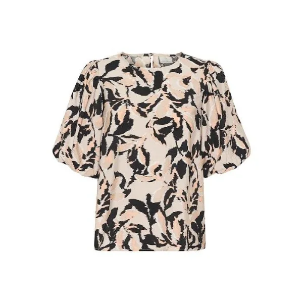 Blouse met korte mouwen A-shape Beige/Black/Peach Blurry Leaf beige