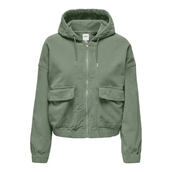 Corduroy damesjack van Only;Model 'Kenzie';Look: effen;Pasvorm: Comfort fit;Kraagmodel: Capuchon met tunnelkoord;Sluiting: deelbare ritssluiting;Zakken: Klepzakken;Materiaalverwerking: Corduroy;Materiaal: Katoenmix;Ruglengte bij maat S: 53 cm;Schouderbreedte bij maat S: 61 cm;Borstomvang bij maat S: 56 cm;Mouwlengte bij maat S: 47 cm