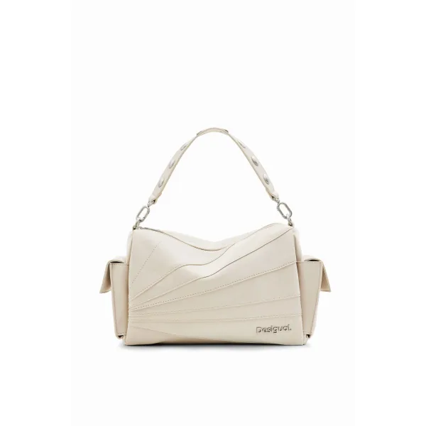 Ontdek de middelgrote schoudertas van Desigual, die met patches van verschillende texturen unieke accenten zet. Ze beschikt over een afneembare schouderriem voor veelzijdige draagmogelijkheden en een hoofdvak met een klein ritsvakje voor je essentials. De korte schouderriem is versierd met nageldecoratie en geeft de tas een trendy uitstraling.