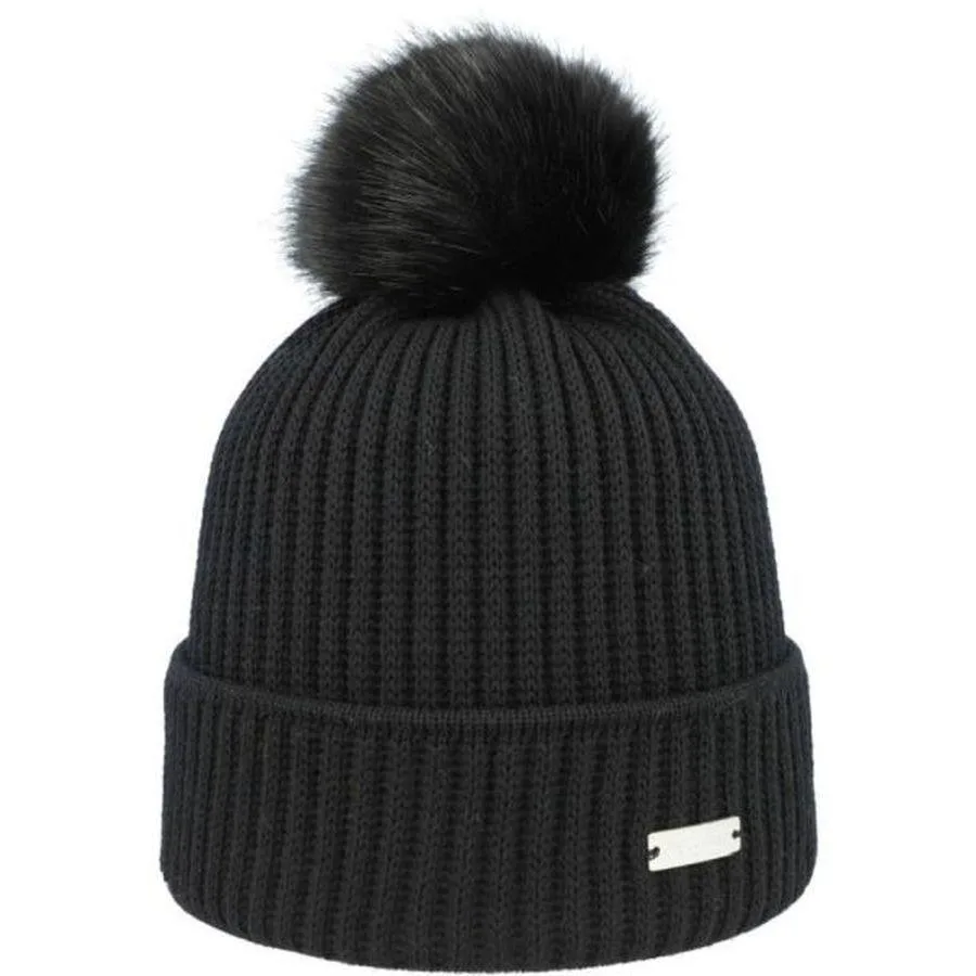 Design: Geribbeld gebreid; Materiaal: Knitwear; Motief: Effen; Type muts: Bobble muts; Extra's: Label plaatje
