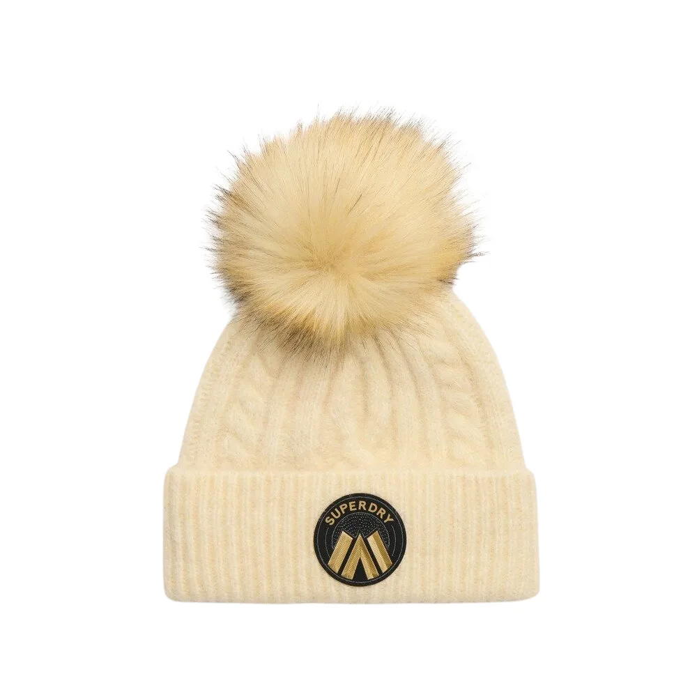 Met een fraaie finishing touch voor je winteroutfit kun je op verschillende manieren een look opbouwen. De luxe gebreide beanie met kabelpatroon is een prachtig zacht accessoire, geschikt voor elke outfit. Het klassieke gebreide kabelontwerp en de pompon van imitatiebont geven elke winterse outfit een boost. Kabelgebreide beanie Zachte textuur Wolmix Superdry-logobadge Bijpassende items verkrijgbaar