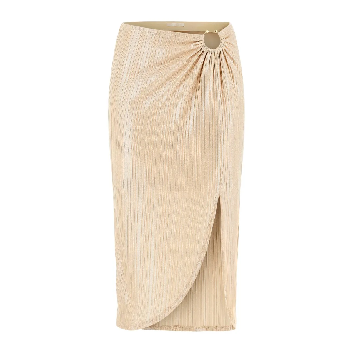 Guess Cristina damesrok van beige katoen. Authentiek Guess-kledingstuk - streetwear/sportswear design van Guess - Guess voor dames, perfect voor dagelijks gebruik - deze beige Guess-rok is ideaal om te combineren met de rest van je garderobe - comfortabel katoen - klassiek - Cristina -