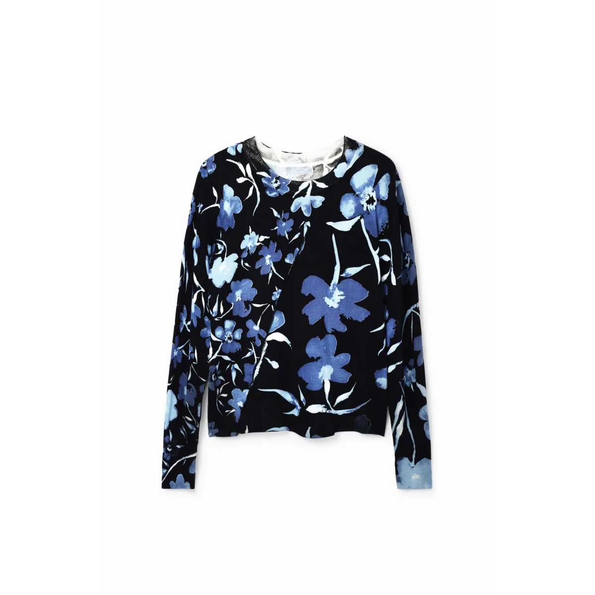 Omarm, uitdrukken en betoveren in deze levendige bloemenpullover. Ervaar moeiteloze stijl met het comfort van de hele dag. De zachte gebreide stof valt prachtig, met een unieke blauwe bloemenprint tegen een klassieke zwarte achtergrond. Geniet van de ontspannen pasvorm en de klassieke ronde hals, perfect om te combineren of solo te dragen. De duurzame, onderhoudsvriendelijke mix van viscose en acryl zorgt voor langdurig dragen en eenvoudig onderhoud. Dit opvallende stuk voegt naadloos een vleugje artistieke flair toe aan je garderobe voor elke casual gelegenheid.
