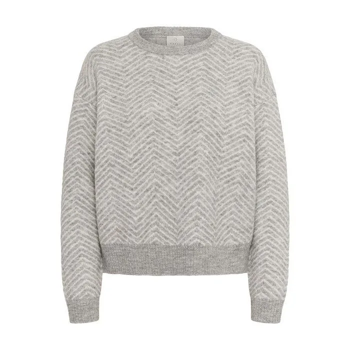 Sweater met chevron breisel en zachte uitstraling. Recht model, ronde hals, lange mouwen en geribde boorden voor een nette afwerking.