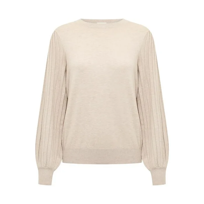 Materiaal: Knitwear; Halstype: Ronde hals; Motief: Mélange; Details: Gedrapeerd, Plissé; Pasvorm: Normale pasvorm; Armlengte: Lange mouw; Lengte: Normale lengte