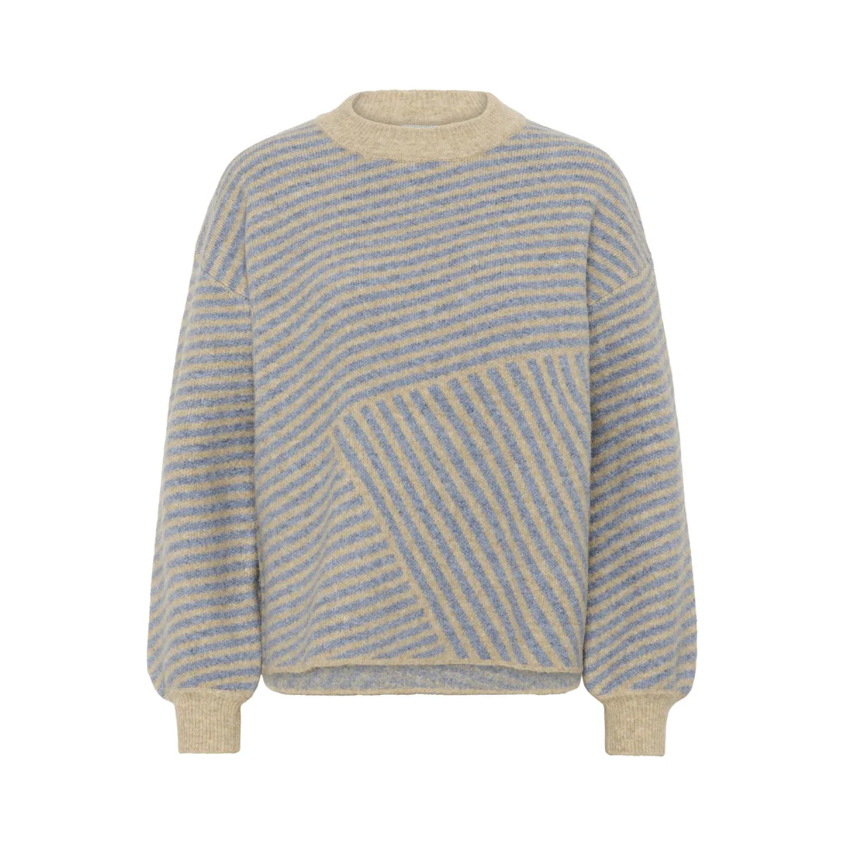 Kaffe Trui 'KAVerana' beige / royal blue/koningsblauw