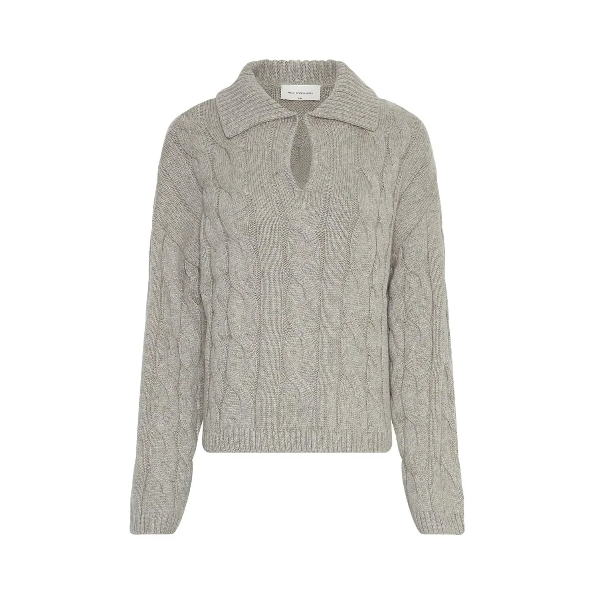 Gebreide damespullover van MSCH Copenhagen;Materiaalmix met katoengehalte;Relaxed fit;Model 'Pavana Peony';Kabelpatroon;Platte kraag;Druppelvormige hals;Ruglengte bij maat S/M: 52 cm;Mouwlengte bij maat S/M: 52 cm