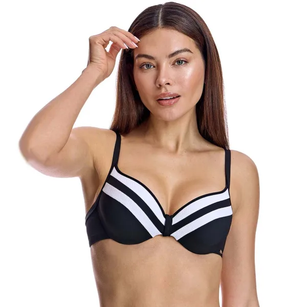 Dit beugelbikinitopje is de perfecte combinatie van stijl en functie. Het biedt een geraffineerde en opvallende look voor op het strand of bij het zwembad.nn Details:nn - Cups met beugels en verstevigde ondersteuning.n - Verstelbare bandjes.n - Op sport geïnspireerd ontwerp.n - Sneldrogend en chloorbestendig materiaal.n - Veilige achtersluiting.nn Het lijdt geen twijfel dat bikini's een van de populairste zwemkledingitems onder vrouwen zijn. Bij bikini's speelt het bikinitopje een fundamentele rol om je er mooi uit te laten zien en je mooi te laten voelen. Wij werken aan modellen waardoor je je tegelijkertijd elegant en mooi voelt, zonder enige vorm van vulgariteit.nn Onze bikinitops passen perfect bij elk type en elke borstomvang, zonder uitzondering.n Samenstelling: Buitenkant: 76% Polyamide, 24% Elastaan; Binnenkant: 72% Polyamide, 28% Elastaan, Cup: 100% Polyestern Onderhoud:nHandwas.n Gebruik neutrale zeep.n Niet draaien of knijpen.n Aan de lucht drogen.