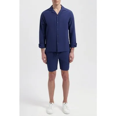 Wahts Cooke | Stretch Seersucker Shirt Navy Blue Prijzen