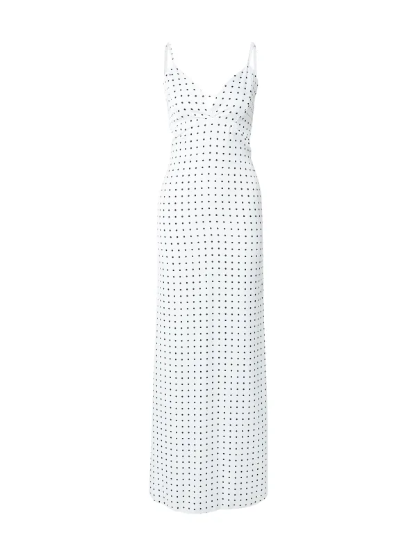 Design: Diepe snit/decolleté, Om te knopen/binden, Uitgesneden rug; Halstype: V-hals; Motief: Gestippeld; Soort bandjes: Spaghettibandjes; Details: Gedrapeerd; Extra's: All-over patroon, Voelt zacht aan; Lengte: Lang/maxi; Snit: Getailleerd; Pasvorm: Normale pasvorm; Armlengte: Mouwloos