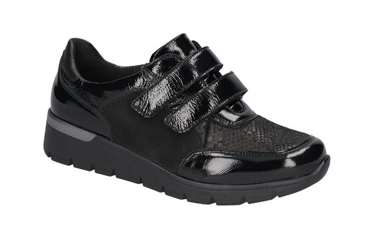 Waldlaufer op onze webshop. Schoenen van het topmerk Waldlaufer. Dit model is uitgevoerd in een combinatie van lak, nubuck en stretchmateriaal. het voorblad van stretchmateriaal rekt mee met de vorm van de voet. Doordat het voetbed uitneembaar is, kunnen oomk eigen inlegzolen gedragen worden. Deze extra brede, wijdte K, schoenen artikel 626K31 400 001 in de kleur zwart van Waldlaufer shop je gemakkelijk en snel op onze webshop.