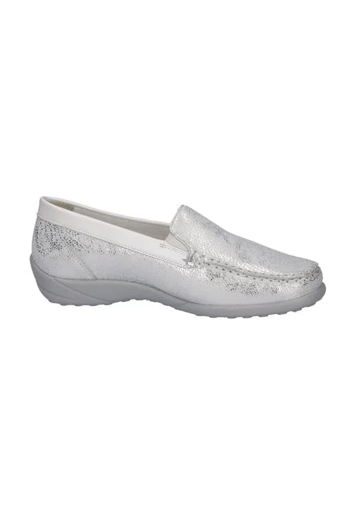 Loafers van het comfortabele merk Waldläufer uitgevoerd in wit leer. Een heerlijke extra brede schoen waar u zo op wegloopt door de rubberen zool en het zachte leer.