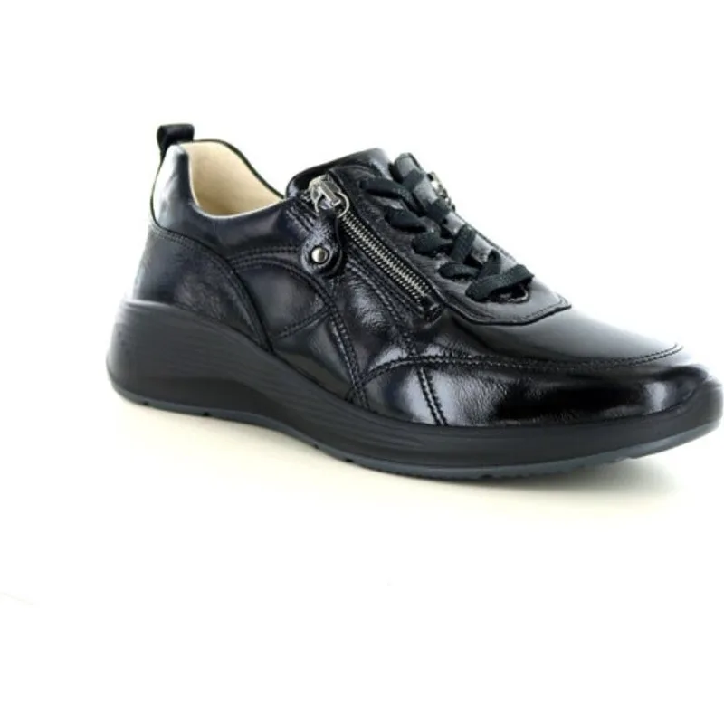 De 698001 wijdte K van Waldlaufer is een mooie veterschoen gemaakt van leer [lak], voor dames. Deze schoen heeft een verwisselbaar voetbed en is geschikt voor steunzolen. Deze veterschoen is uitgevoerd in de kleur 143 001 zwart en is gemaakt op wijdte K [extra breed]. De sluiting is door middel van een rits en veters. Merk: WaldlauferArtikel: 698001Kleur: 143 001 zwartType: Veterschoen Breedtemaat: K [extra breed]Uitneembaar voetbed: JaSluiting: Veters en ritsen Materiaal: Leer [lak]