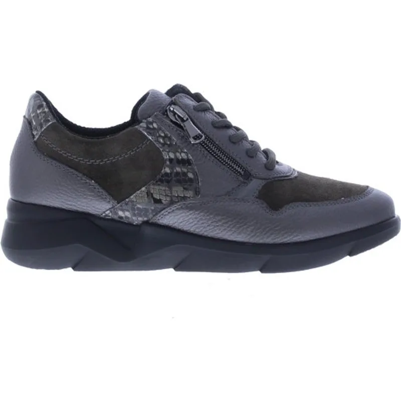 Waldläufer Funky K Dames Sneaker Ontdek de Waldläufer Funky K Dames Sneaker - De ultieme combinatie van stijl en comfort. Deze veterschoen is ontworpen met uw gemak in gedachten. De extra brede K-leest biedt een heerlijk draagcomfort, terwijl de veter- en ritssluiting het aan- en uittrekken vergemakkelijkt. Bovendien is de schoen licht van gewicht en volledig met leer gevoerd, inclusief een uitneembare binnenzool. De metallic accenten geven deze sneaker een unieke, trendy uitstraling. Of je nu een dagje winkelt, een wandeling maakt of gewoon lekker thuis bent, deze Waldläufer-sneaker past perfect bij elke gelegenheid. Investeer in uw comfort en stijl met de Funky K Dames Sneaker. Bestel gemakkelijk online of kom naar één van onze winkels en krijg advies. Eigenschappen Buitenkant: Suède en