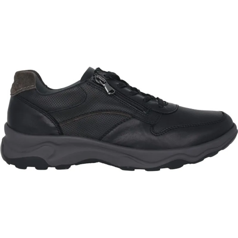 De Waldläufer H-Max lage herenschoen is een stijlvolle metgezel voor het dagelijks leven. Zwart aangevuld met grijze details en de materiaalmix accentueert de schoen visueel. De vetersluiting en de extra ritssluiting maken een individuele aanpassing aan elke voetvorm mogelijk. Met de zool in grijs en zwart is de H-Max te combineren met veel verschillende outfits en draag je bovendien veilig en comfortabel de hele dag door.