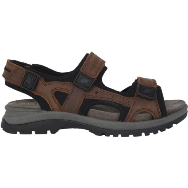 Aantrekkelijk design, hoogwaardige afwerking, optimale pasvorm. De H-Taro herensandaal is een echte ranger. Het bovenmateriaal is robuust, de comfortbreedte H biedt voldoende ruimte, zelfs voor iets sterkere voeten en past zich dankzij meerdere klittenbandsluitingen aan elke voet individueel aan. Het profiel van de zool zorgt voor een veilig loopgevoel.
