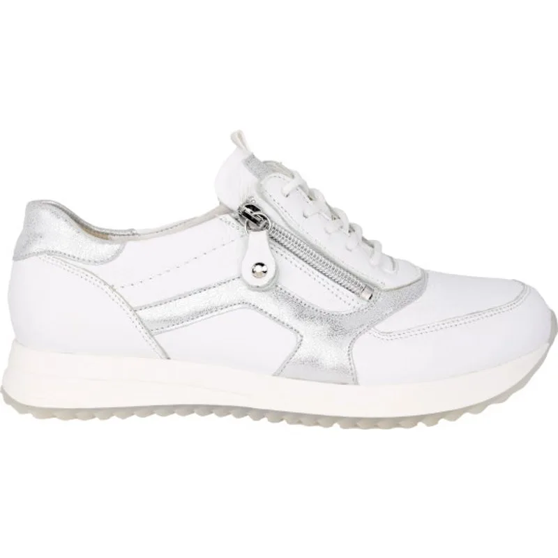 De H-Vicky damessneaker overtuigt door zijn modieuze stijl en comfort. Maar de lage schoen ziet er niet alleen goed uit, de praktische rits aan de zijkant maakt het aan- en uittrekken eenvoudig en de speciale TR-Light zool zorgt voor optimaal loopcomfort. De Waldläufer H-breedte biedt ook comfort voor iets sterkere voeten. Dankzij het kenmerkende uitneembare voetbed kunt u ook uw eigen inlegzool gebruiken.