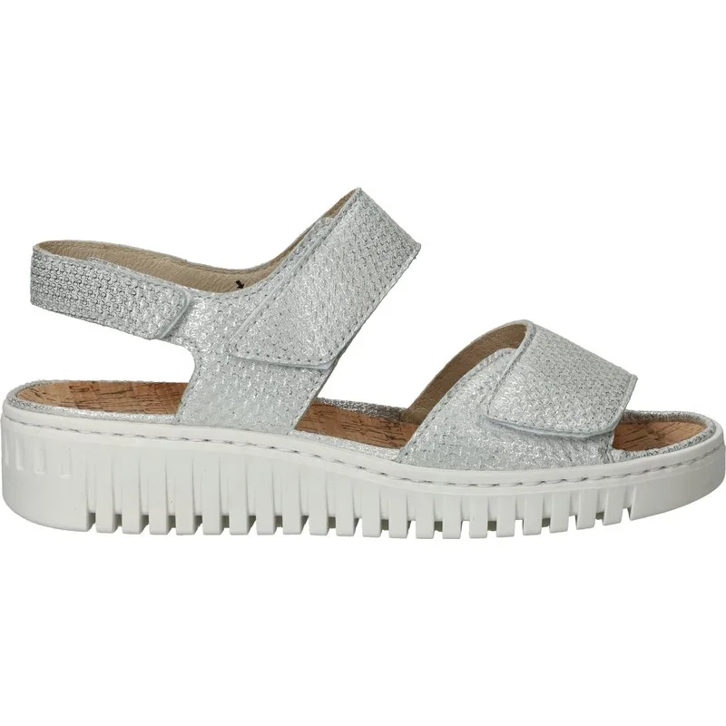 Deze Waldlaufer Valerie Sandalen zijn voor Dames in de kleur Zilver. De schoenen zijn gemaakt van het materiaal Metallic en de voering is gemaakt van . De voetbreedte van de schoenen is K - extra breed.