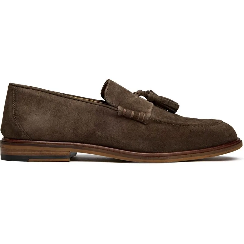 Deze rijkbruine suède loafers voegen moeiteloos verfijning toe aan je garderobe. De Putney Tassel combineert eersteklas suède vakmanschap met traditionele kwastjes aan de voorkant voor een tijdloos silhouet dat geschikt is voor zowel de vergaderzaal als een weekendbrunch. Een dempende binnenzool zorgt voor comfort de hele dag, terwijl de synthetische zool betrouwbare grip en duurzaamheid biedt. Klassieke herenmode in een modern jasje.