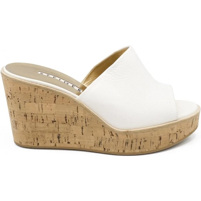 Walter Steiger platformmuiltjes van wit leer.Platform van kurk.Gemaakt in Italië.