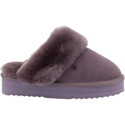 Specificaties: * Pasvorm: instapslof; regular fit * Voering: 100% originele Australische Merino schapenwol; thermoregulerend en vochtafvoerend * Bovenwerk: suède * Zooltype: verhoogde rubberen buitenzool * Kleur: paars * Materiaal: suède – wol – rubber * Extra bijzonderheden: de rubberen zool geeft grip en het is geen probleem om ermee naar buiten te gaan