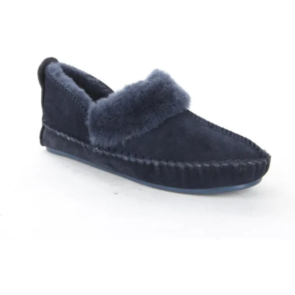 Warmbat Polarfox DK.NAVY pantoffel (gesloten hiel) dames in de kleur blauw materiaal suède maat 37 binnenvoering Schaapsvacht materiaal zool