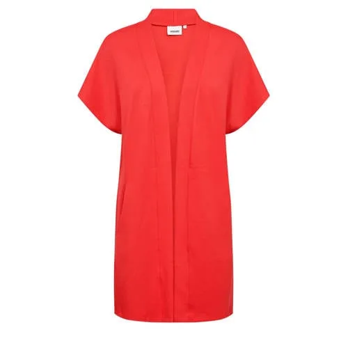 Dit lang rood dames vest van Wasabiconcept is een praktische laag voor zomerse dagen waarop je net iets meer bedekking wilt, zonder het warm te krijgen. Het lange model valt mooi over de heupen, terwijl de korte mouwen je armen vrij laten. De effen rode kleur geeft elke outfit direct een fris kleuraccent.Luchtig laagje met een mooie lijn Lange lengte die soepel langs het lichaam valt en prettig over heupen en bovenbenen draagt Korte, rechte mouwen zorgen voor bewegingsvrijheid en een luchtig gevoel Opstaande kraag geeft een rustige, verzorgde halslijn Zonder sluiting, zodat je het vest makkelijk open draagt over tops en jurken Gemaakt van 48% MODAL en 4% ELASTHANE voor een zachte stof met lichte stretch Onderdeel van het grote maten assortiment met een pasvorm die is afgestemd op grotere matenComfortabel over je zomeroutfitsDit lange vest is ideaal als extra laag over een mouwloze top, T-shirt of jurk in de zomer. In de ochtend op kantoor, tijdens een etentje of als je snel iets over je schouders wilt slaan, geeft het net wat meer comfort en kleur zonder zwaar aan te voelen.Wasabiconcept: modieuze pasvormenWasabiconcept richt zich op moderne dames die op zoek zijn naar draagbare mode met een mooie pasvorm. De collectie combineert trendgevoel met praktische details, zodat je kleding kiest die prettig aanvoelt en goed aansluit bij je dagelijkse leven.Een lang, luchtig vest dat je garderobe in één keer meer kleur en variatie geeft.