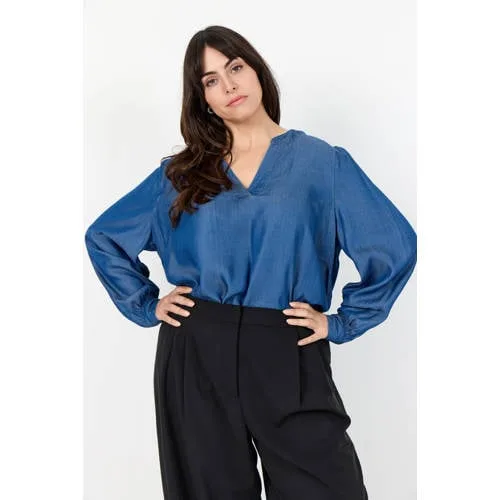 Deze Wasabiconcept dames top met lange mouw is een rustige basis voor je garderobe in een frisse blauwe kleur. De effen tint en ronde hals geven een eenvoudige, vrouwelijke uitstraling die makkelijk combineert met je favoriete broeken en rokken. De top is gemaakt van 100% lyocell, een soepele stof die zacht langs de huid valt en geschikt is voor mildere lentedagen.Comfortabele pasvorm in grote maten Gemaakt van 100% lyocell voor een zachte, soepele touch Lange, rechte mouwen voor extra bedekking en een rustige look Ronde hals die mooi aansluit zonder strak te zitten Effen blauwe kleur die makkelijk te combineren is Speciaal onderdeel van het grote maten assortiment voor een pasvorm die is afgestemd op grotere maten Geen zakken voor een glad silhouet onder vesten en jassenIdeaal voor layered looks in het voorjaarDeze top past goed in je dagelijkse outfits. Draag de top los op een broek met hoge taille of in een rok voor een wat meer geklede uitstraling. In het voorjaar werkt het goed als basislaag onder een openvallend vest of een luchtige blazer, waarbij de lange mouwen zorgen voor extra bedekking en comfort.Wasabiconcept: eigentijds en draagbaarWasabiconcept richt zich op moderne items die goed aansluiten op het dagelijkse leven. Heldere kleuren, fijne materialen en een doordachte pasvorm staan centraal. Met deze top kies je voor een kledingstuk dat eenvoudig te stylen is en waarin je je gemakkelijk door de dag beweegt.Een rustige, vrouwelijke basis die het hele seizoen goed van pas komt.