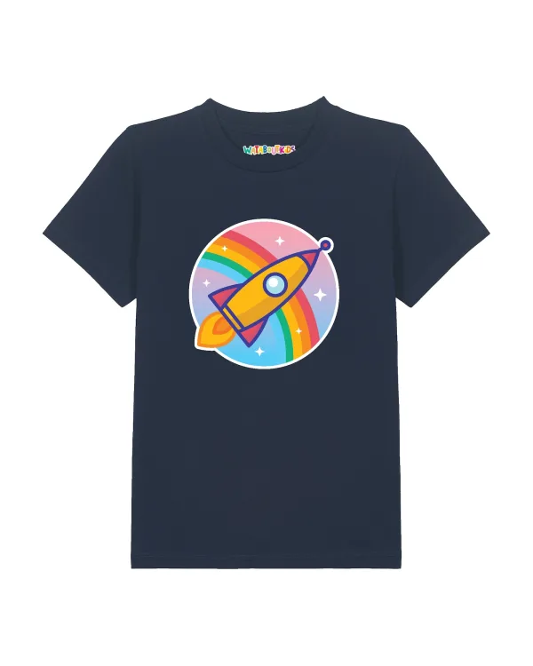 Specificaties: watabout.kids Shirt ‘Cartoon Rakete’ navy / oranje / rosa / rood