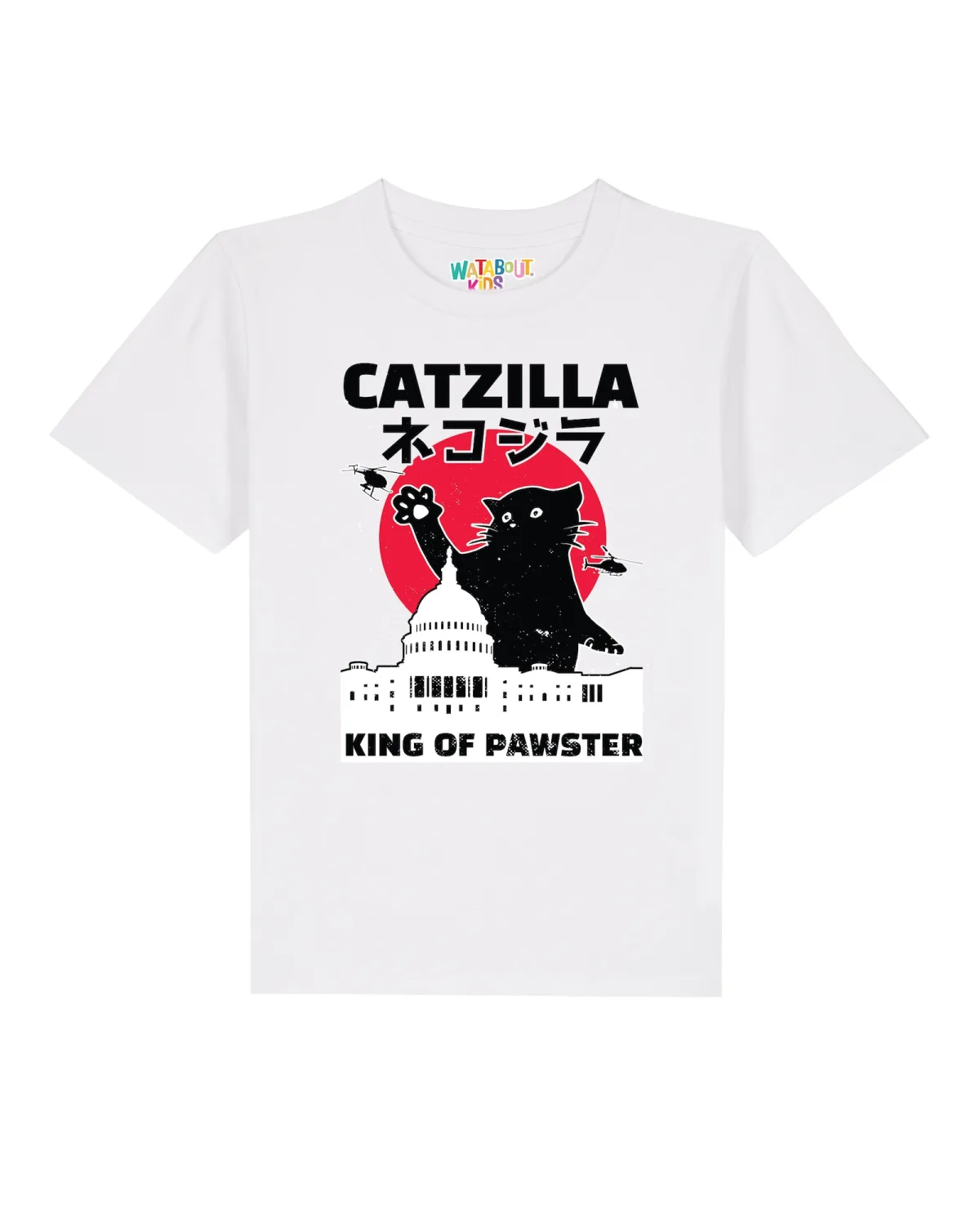 watabout.kids Shirt ‘Catzilla’ rood / zwart / wit