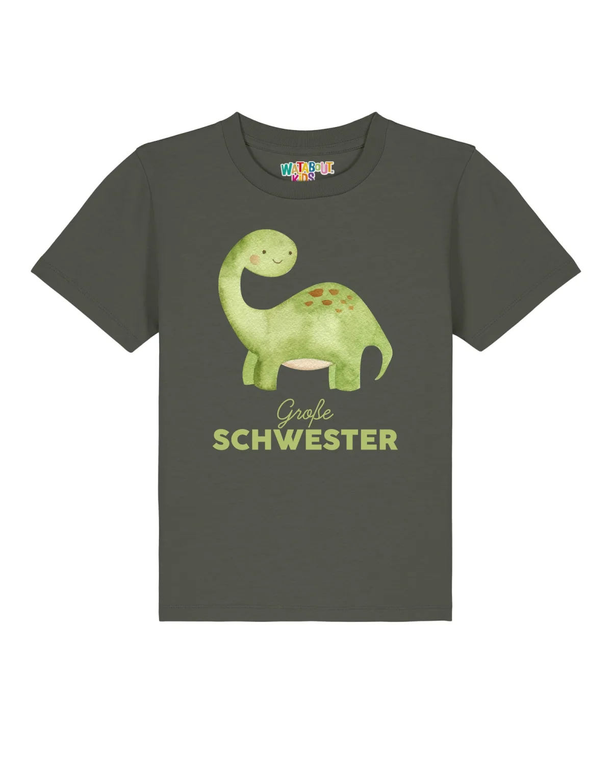 watabout.kids Shirt ‘Dinosaurier 04 Große Schwester’ kaki / lichtgroen