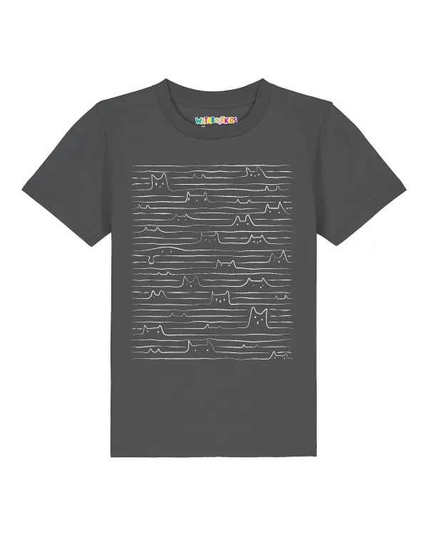 watabout.kids Shirt ‘Doodle Cats’ antraciet / wit