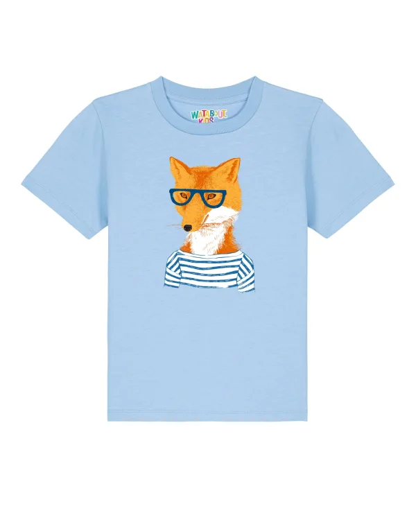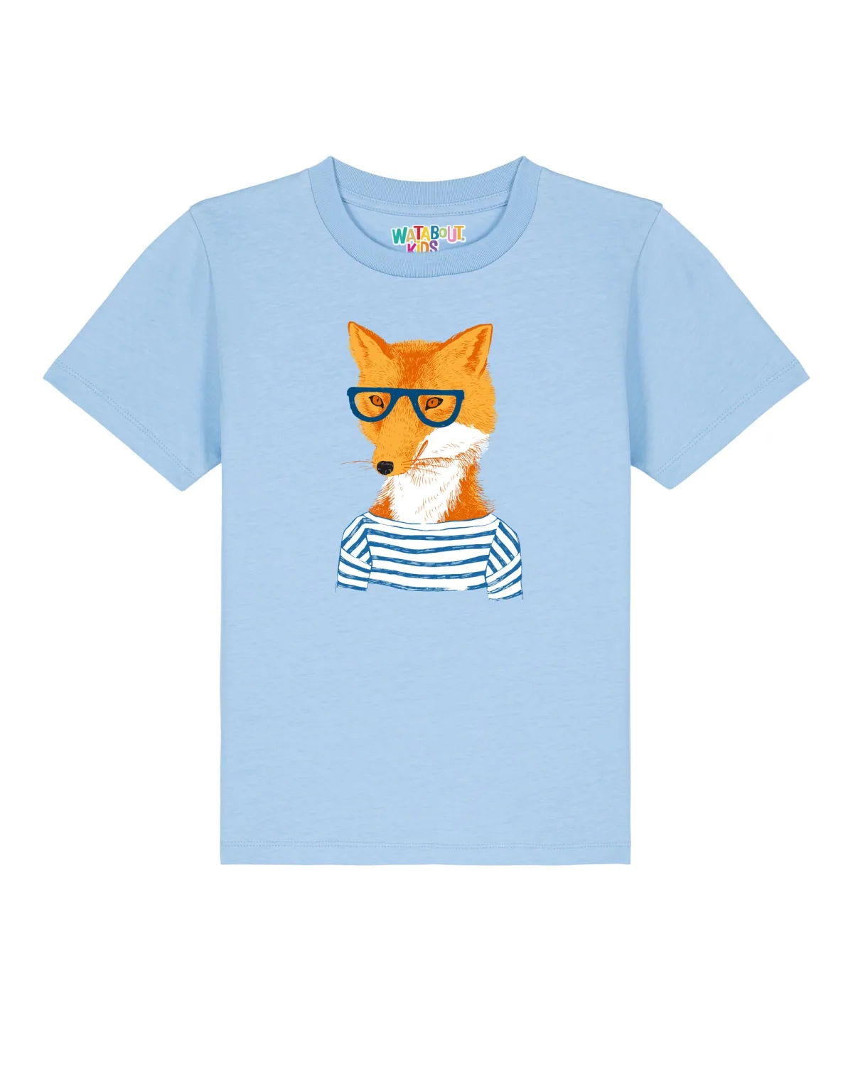 Specificaties: watabout.kids Shirt ‘Fuchs’ lichtblauw / oranje / wit