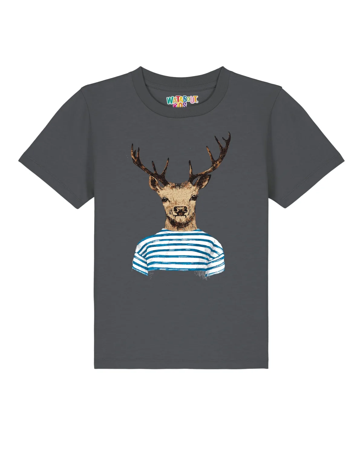 Specificaties: watabout.kids Shirt ‘Hirsch’ donkerblauw / donkerbruin / antraciet / wit